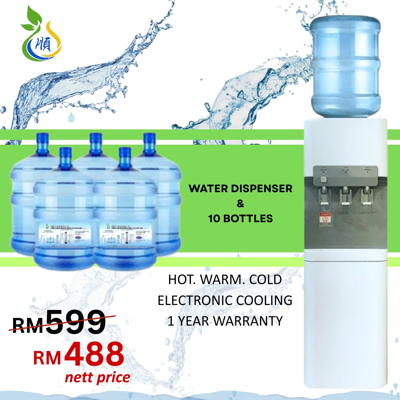 WATER DISPENSER & 10 BOTTLES FREE DELIVERY FREE INSTALLATION FREE SERVICE 1 YEAR WARRANTY
