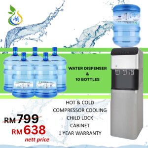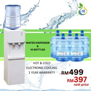 AG3-WATER DISPENSER & 10 BOTTLES HOT & COLD 10 BOTTLES